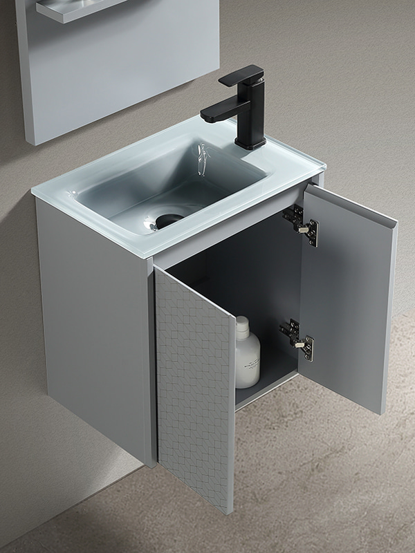 We base ourselves on high quality and high-end markets. Our wholesale Small size Grey PVC Bathroom cabinet set with LED mirrors and Glass basin are in line with international standards and are mainly exported to Europe, America, the Middle East and Southeast Asian countries and other destinations around the world.